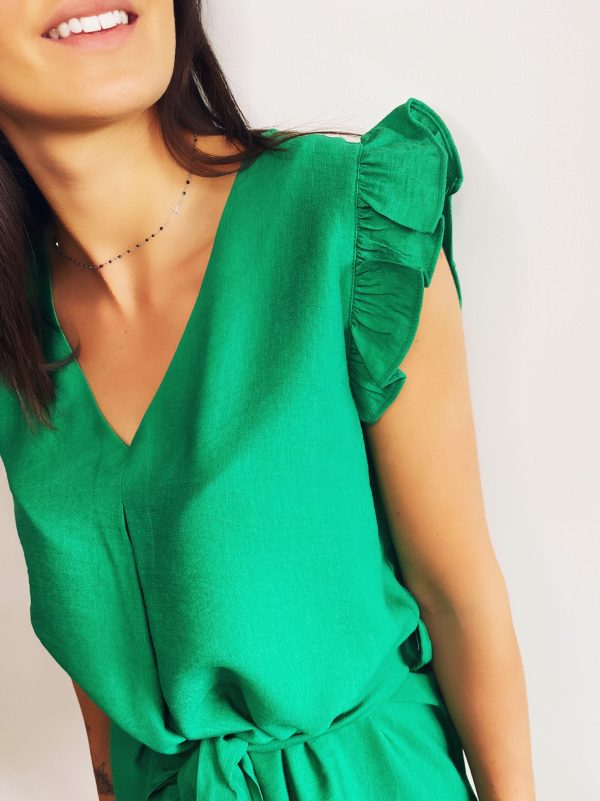 Nous vous conseillons de prendre votre taille habituelle, la pièce portée sur le visuel est une taille 1.